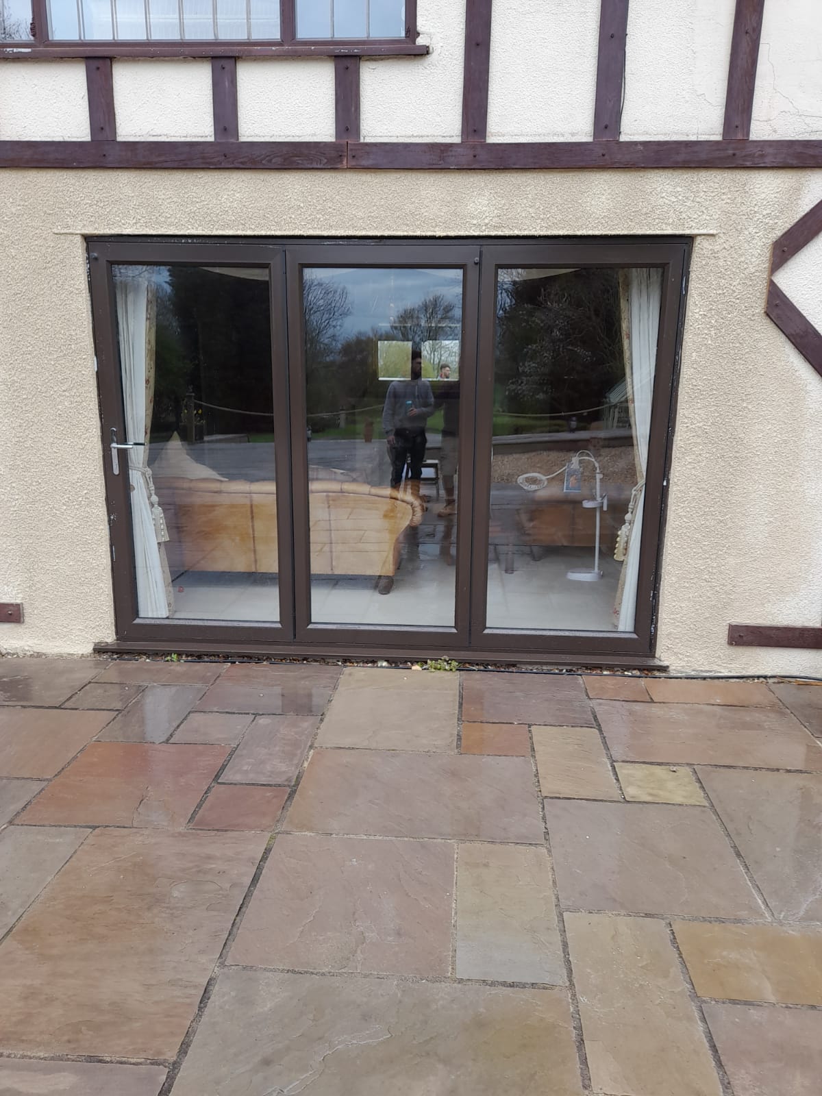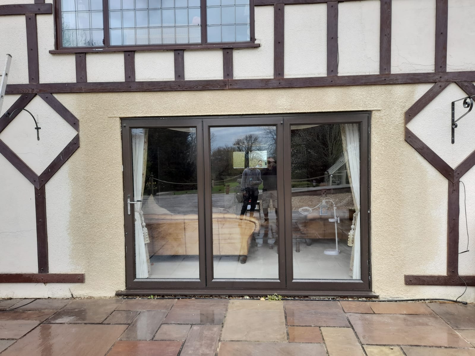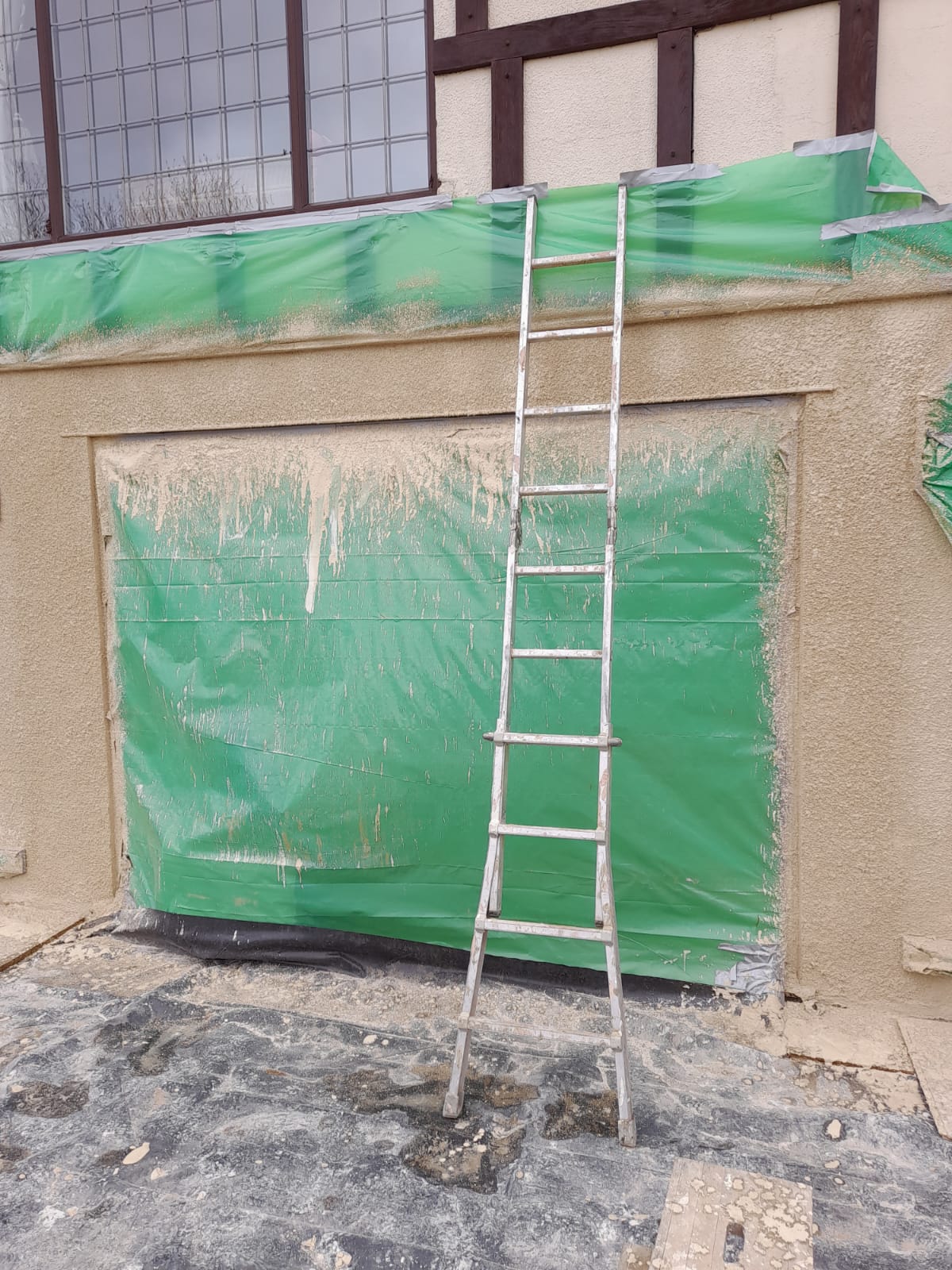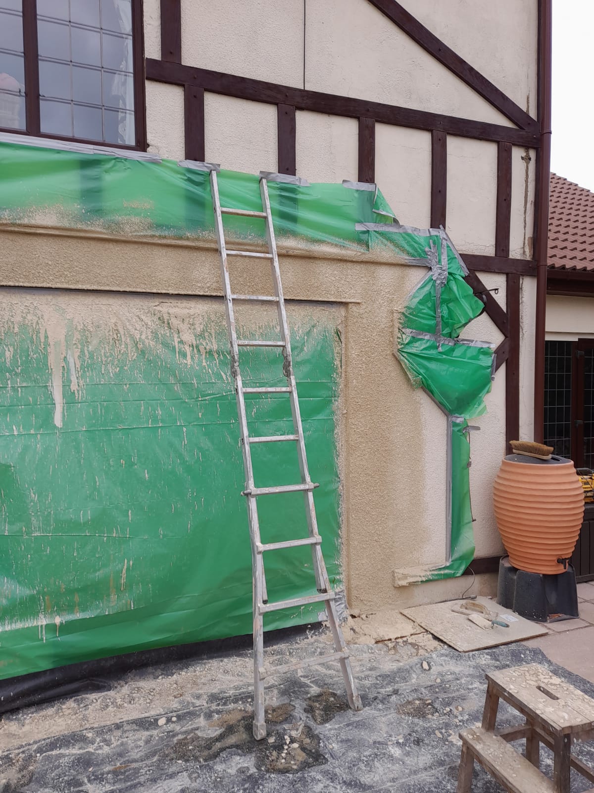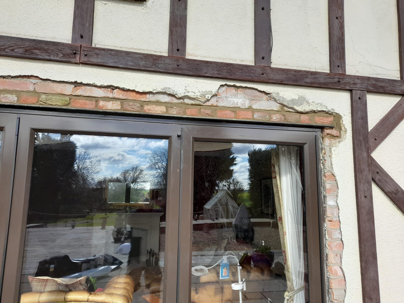 Original window fitters did not render the wall well, we took the old render off and got to a place where we could then improve and refill to match the surrounding render. We have planned to cover the seam with another bit of wood cladding. The customer was very happy with the results.